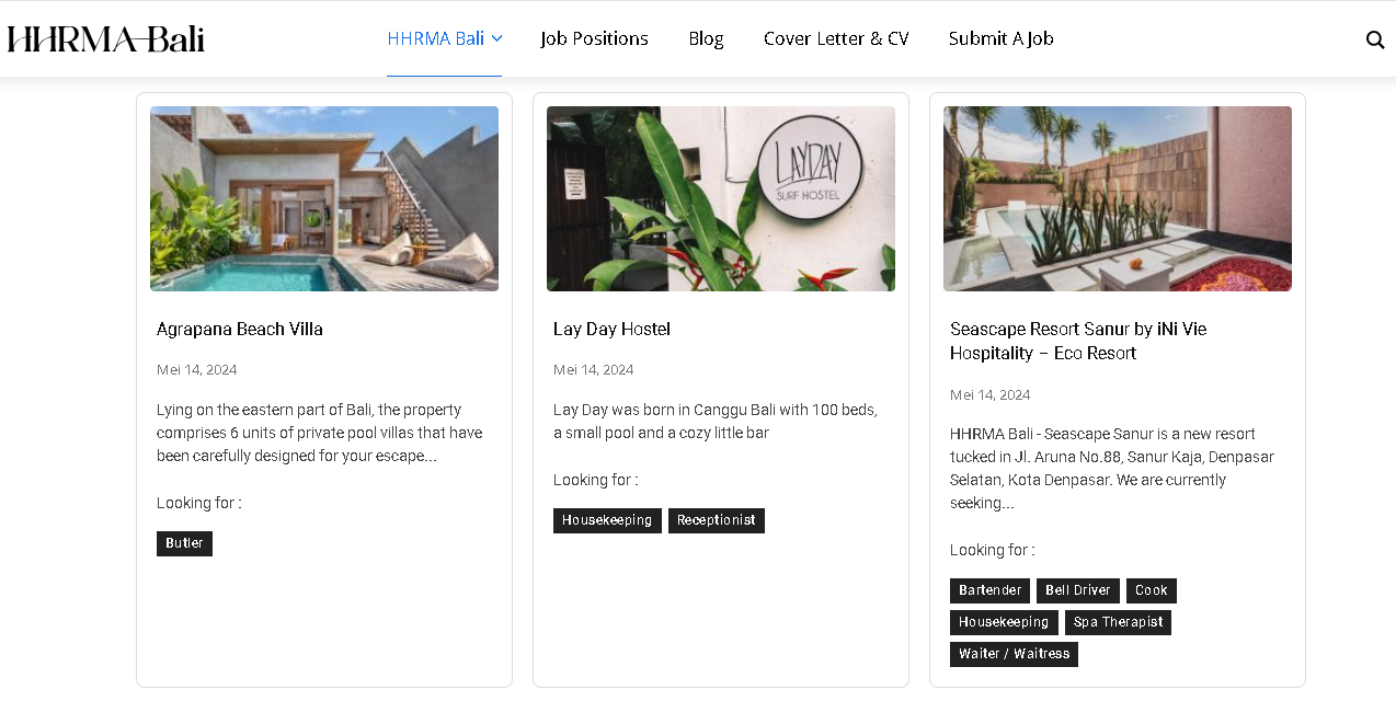 Hanya di HHRMA Bali, Anda bisa menemukan akses ke lowongan kerja eksklusif yang tidak biasa ditemukan di platform lain.